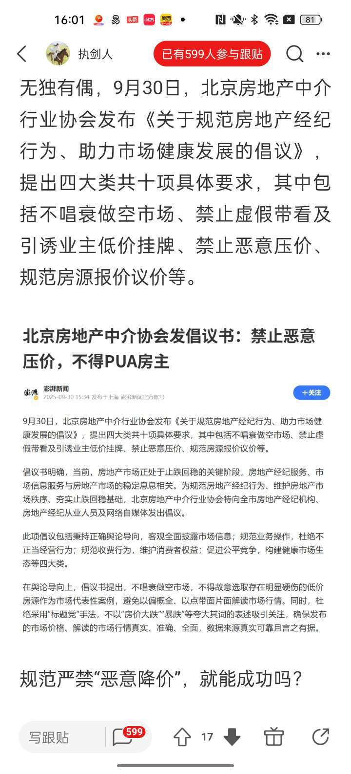 看到这么个消息认为房子要降价属于“不良言论” |