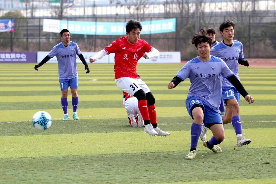 义乌队主场迎战金华开发区队。第14分钟,义乌队中路直塞撕开防线,7号朱家乐单刀被扑出后,跟进的队长10号赛尔克·沙尔合提拜轻松补射空门得手。第43分钟,义乌队利用本场第五个角球,由插上的边后卫项水冰头球建功,将比分锁定为2:0。