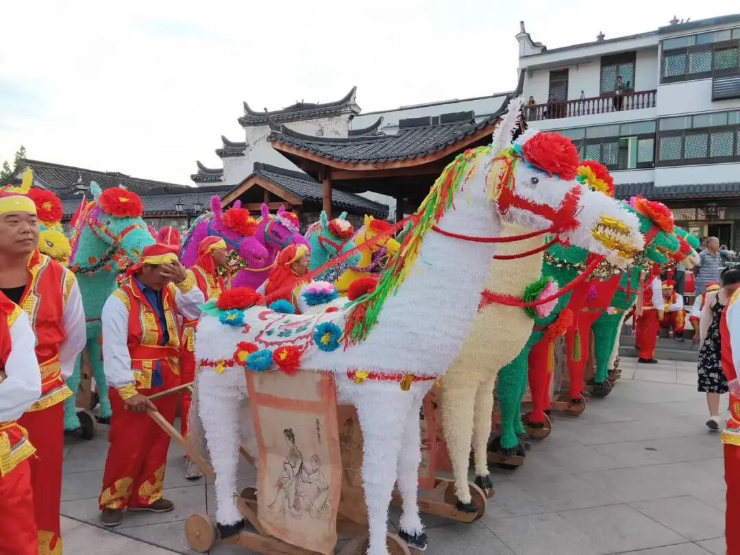 项宅社区徐村的余庆堂板凳龙,是清代流传至今的民俗瑰宝。其龙头造型独具气势,昂首挺胸、双目圆睁,正是大名鼎鼎的“仰天龙”样式,象征着村民奋发向上、不屈不挠的精神品格。这条板凳龙由数十节板凳串联而成,每节凳板上糊以彩纸、绘以龙鳞,内置灯火,灯灯相连便成蜿蜒长龙。